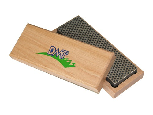 A popular sharpening choice, this DMT® Diamond Whetstone™ sharpener is a fit at home or in the shop offering a sharpening surface to satisfy a variety of edge care needs. This 6" Diamond Whetstone™ sharpener comes in a hardwood case with mounting capability. Includes non-skid rubber feet. The stone measures 6" x 2" x 3/4".